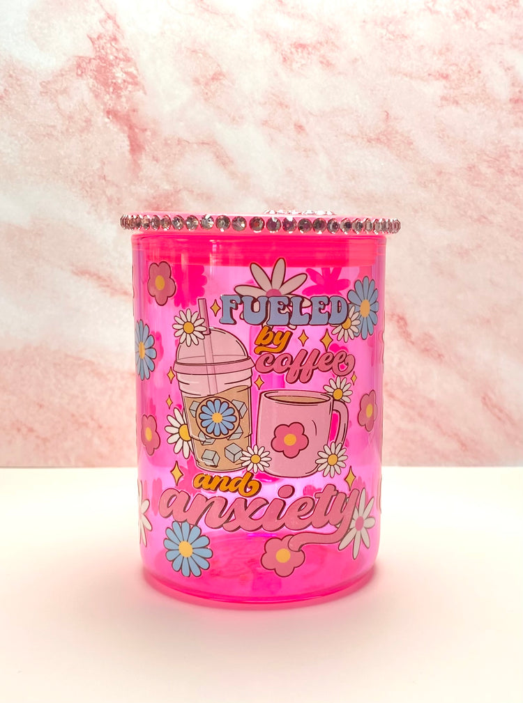 Fuel your day with this quirky pink mug that perfectly sums up your morning mood. Made of durable glass and designed to hold your favorite coffee, this mug will have you feeling pretty while fueling your caffeine and anxiety levels.