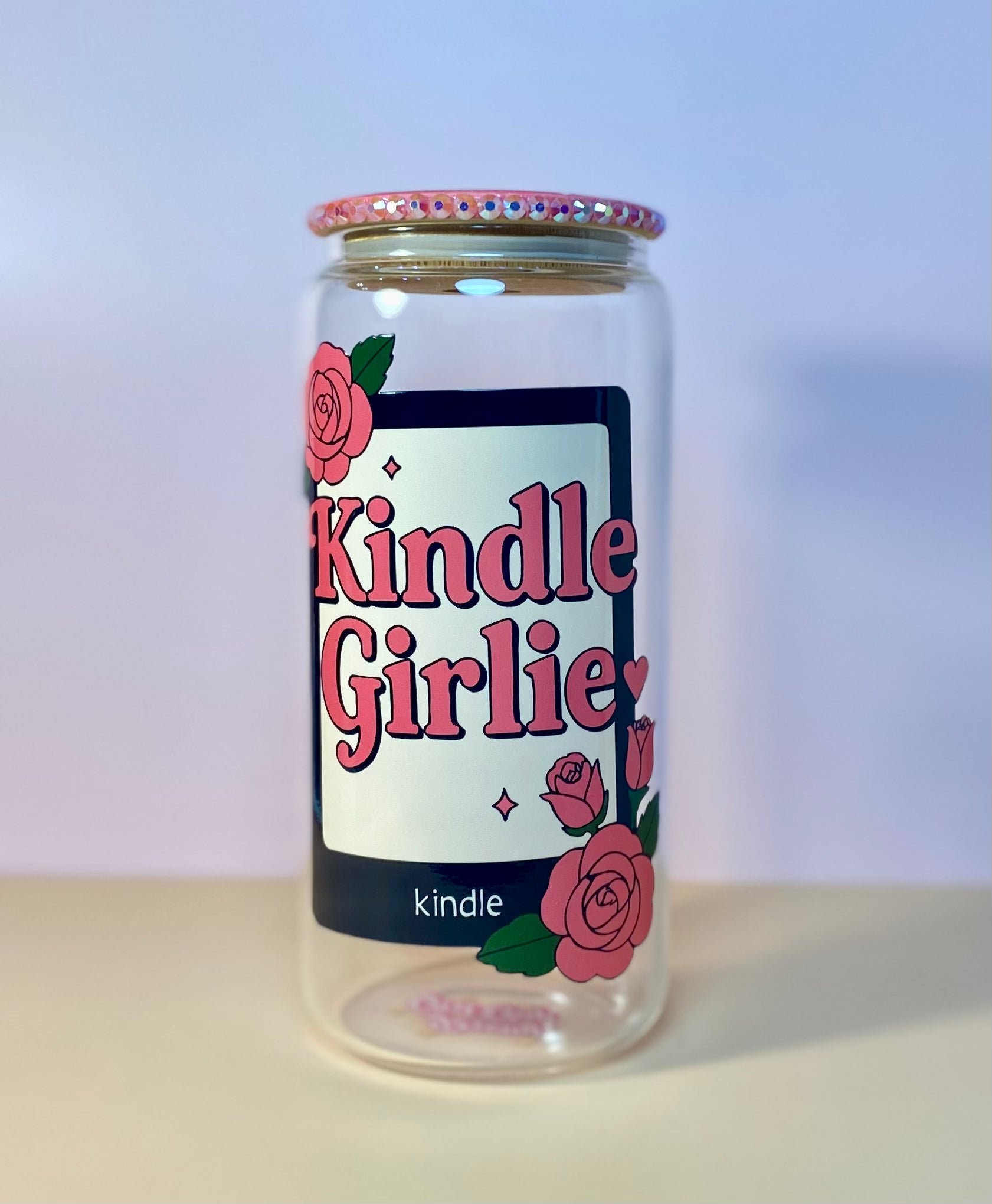Quench your thirst with our Kindle Girlie Glass Cup! With a 16oz capacity, this cup is perfect for staying hydrated while reading your favorite books. Stay stylish and trendy while showing off your love for reading. Cheers to reading and staying hydrated!