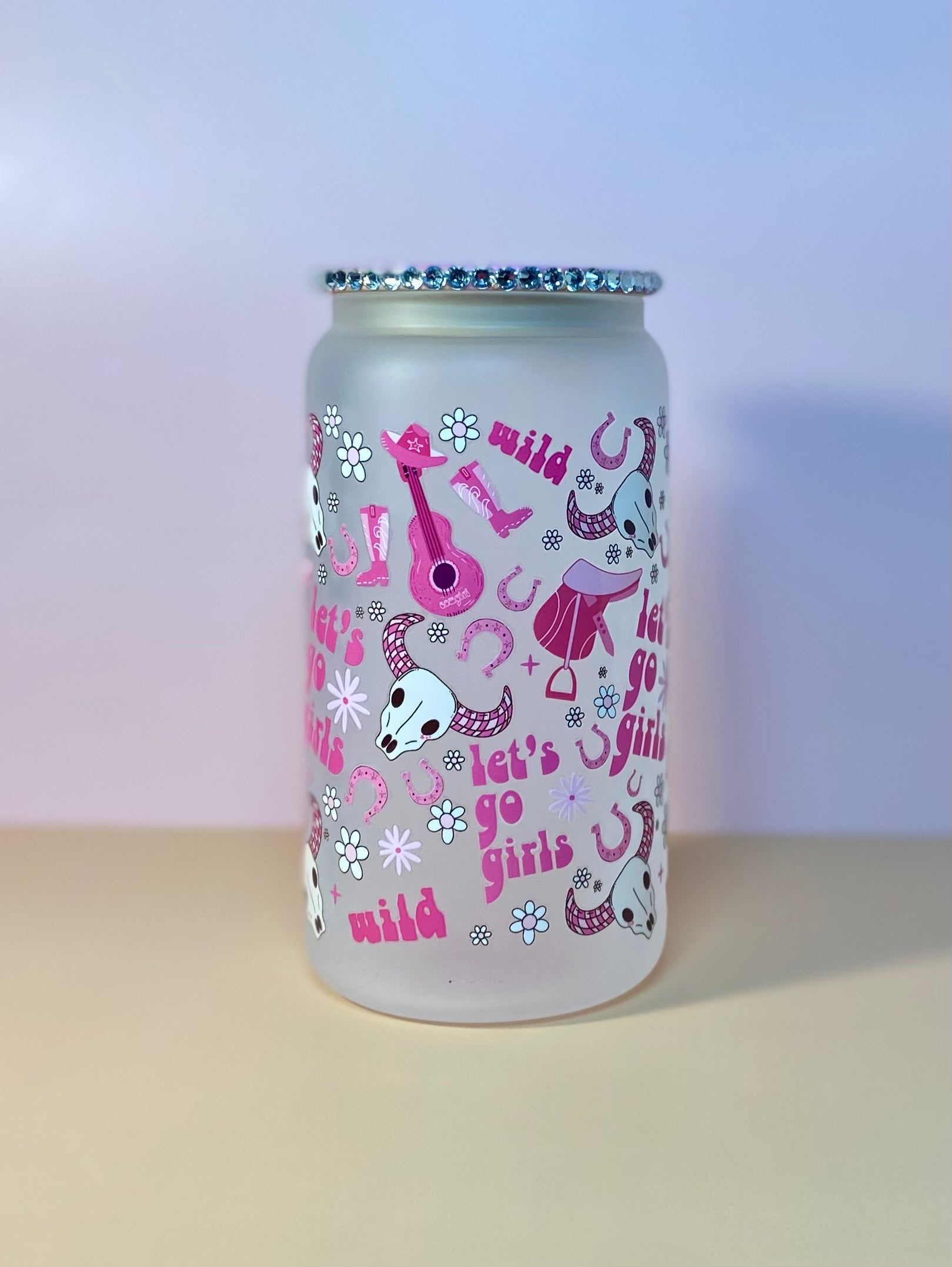 Quench your thirst in style with the Let's Go Girls Glass Cup! Holding 16oz, this cup is perfect for on-the-go refreshment. Grab one for yourself or gift it to your fellow gals, because life's too short to not have fun!
